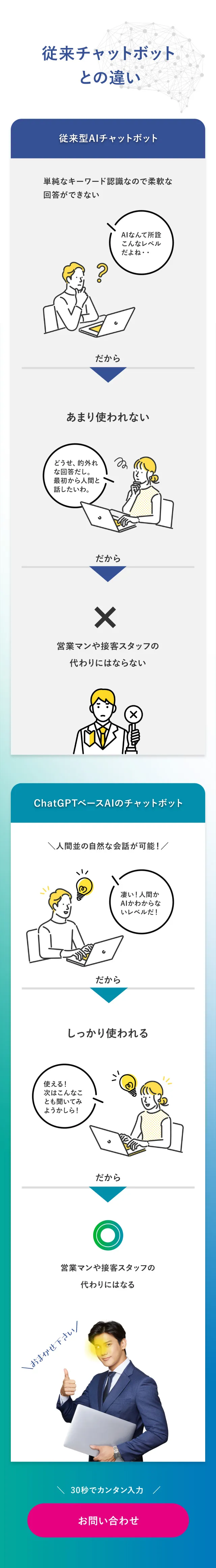 AIが御社サービスや商品の専門用語を学習接客を代行します